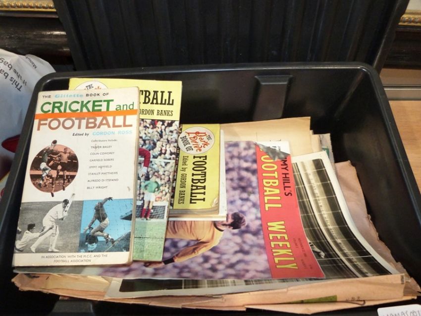 Quantity Classic Car magazines, football rattle, copy of Football Weekly and Goal magazines, various annuals to include The Hotspur Book for Boys 1968, Football Champions, Eagle Annual 1965 (3) *** Amendment - No longer with the Empty Rolex boxes ****