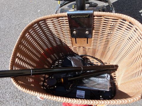 Ableworld motorised battery charged wheelchair with basket and walking stick