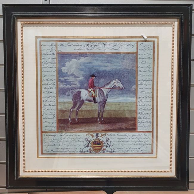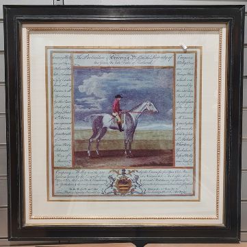 Racehorses with armorial crest of their owners, framed, 74 x 74cm to include the frames (4)