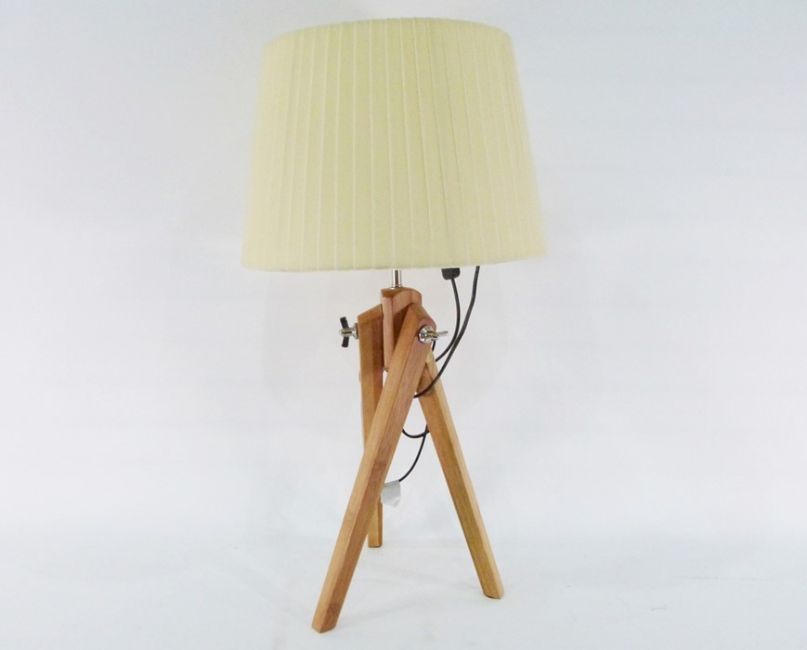 Table lamp formed as a wooden tripod with adjustable legs