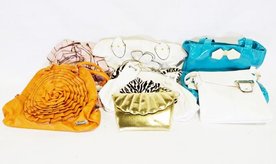 Three boxes of various handbags