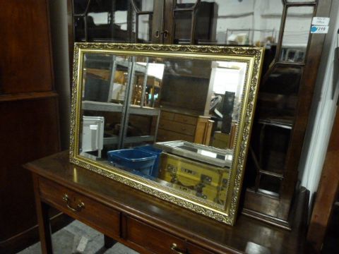 Two rectangular mirrors, one gilt framed, one silvered and moulded with fruit and flowers with a box of various paintings and prints