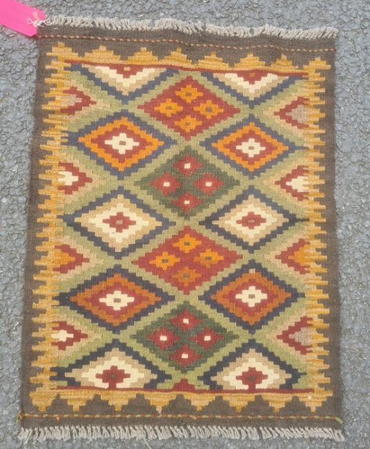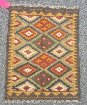 Small Maimana kilim rug in browns and greens etc., 81cm x 64cm.