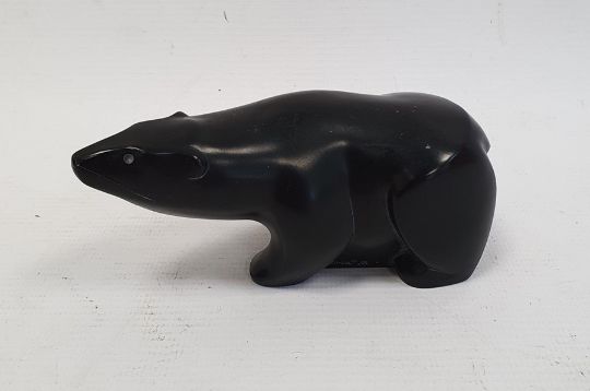 Canadian 'Boma' bear, carved stone, signed and sticker to base