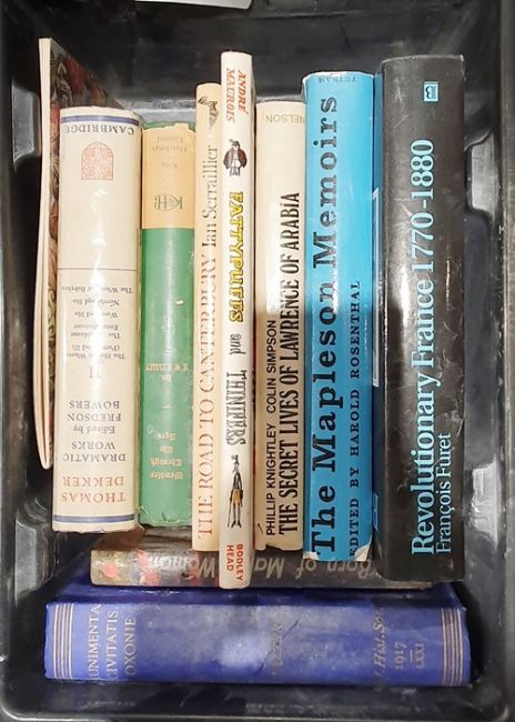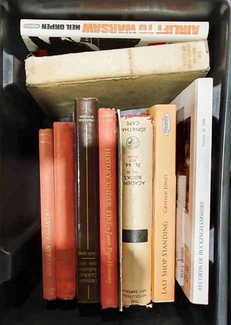 Quantity of assorted volumes to include history, militaria, politics, Polish history, etc (5 boxes)