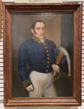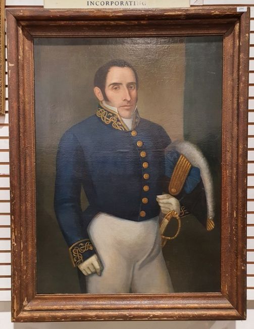 British School - 19th centuryOil on canvasThree-quarter length portrait of a gentleman in naval uniform, 99 x 71cm