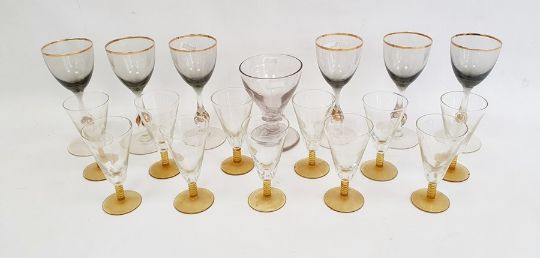 Collection of glass to include three Caithness vases, a Caithness paperweight, a Nachtmann polar bear paperweight, a set of six 1980's gilt rimmed wine glasses, a 19th century wine glass with knopped stem, etc