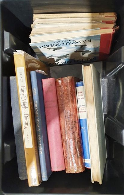 Assorted volumes to include art, history, sport, cigarette cards, fishing, militaria, etc. (4 boxes)