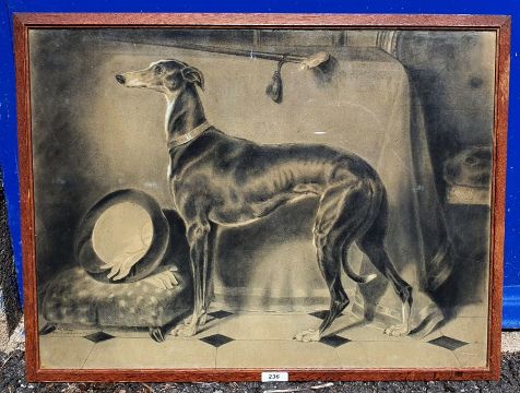 British School - late 19th/early 20th centuryChalk and pastelGreyhound after Landseer signed indistinctly lower left, 45 x 60cm, Signed lower left H. Allee?Condition ReportSome possible minor marking throughout, pictured.Some debris caught behind glass.Wear and chipping to frame. Marking to glass and damage to reverse of mount.
