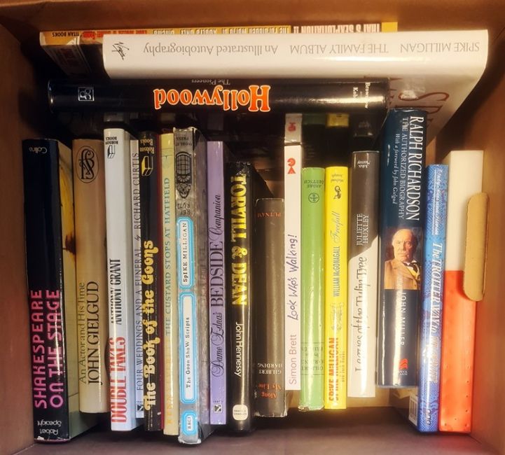 Cartoon Books - Beryl Cook, Glen Baxter, Posy Simmons, Ronald Searle,Simon Drew , and books on Television and Radio celebrities  - Spike Milligan , Kenny Everett, Gilbert Harding etc. ( 2 boxes)