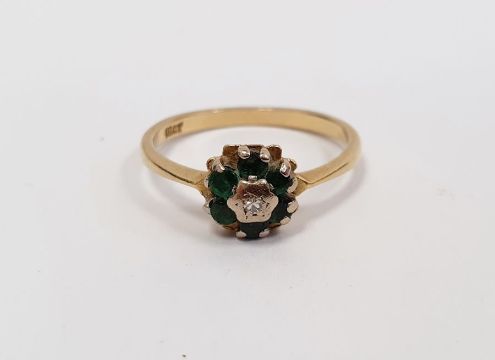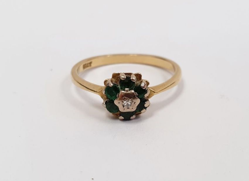 **** WITHDRAWN **** Green and white stone cluster ring, marked 18ct, finger size M, approx. 3g **** WITHDRAWN*****