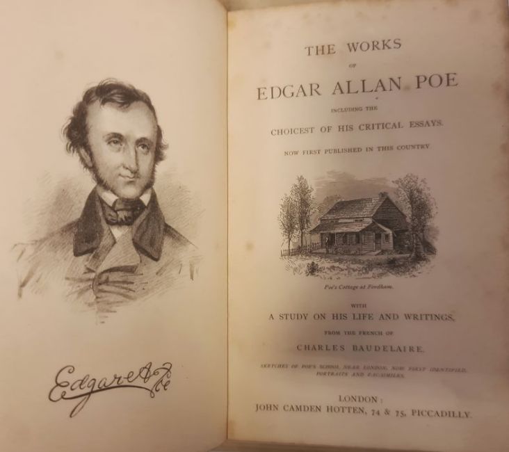 FINE BINDINGS   The works of Edgar Allan Poe, Including the choicest of his critical essays, published London, John Camden Hotten, 74 & 75, Piccadilly,  'The adventures of Gil Blas of Santillane, translated by Tobias Smollett, 1866, Bray Collegiate School crest "The Swiss Family Robinson," and King Edwards Grammar School crest "The Poems of William Wordsworth", 1854 , and part Lewis Carroll Songs for Alice in Wonderland" to include " Will you Walk A Little Faster" and  " You are Old Father William" , no covers (5)