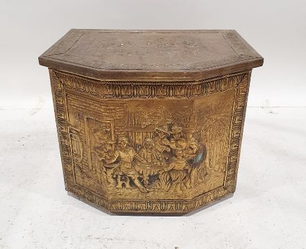 Embossed brass coal box