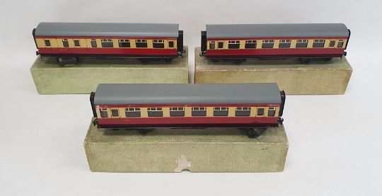 Bassett-Lowke LMS clockwork compound loco (3302/0) no.1063, with tender in brown LMS Livery, with box, three Bassett-Lowke British Rail coaches, first class (111/0), third saloon (113/0) and third break end (112/0) (all boxed) and a quantity of Bassett-Lowke accessories including track and loco parts