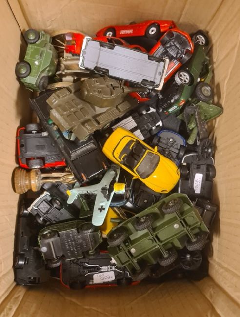 Matchbox carry case, various model vehicles and a box of loose model vehicles to include tanks etc (2 boxes)