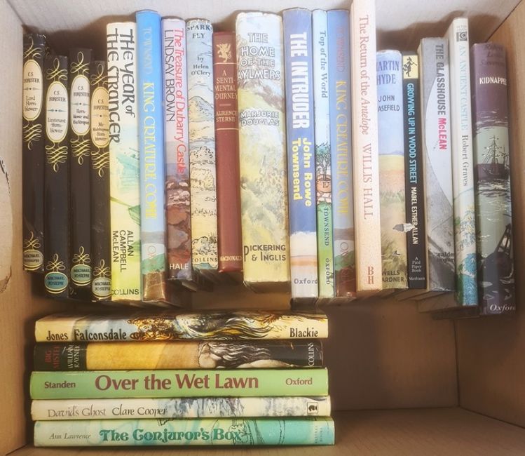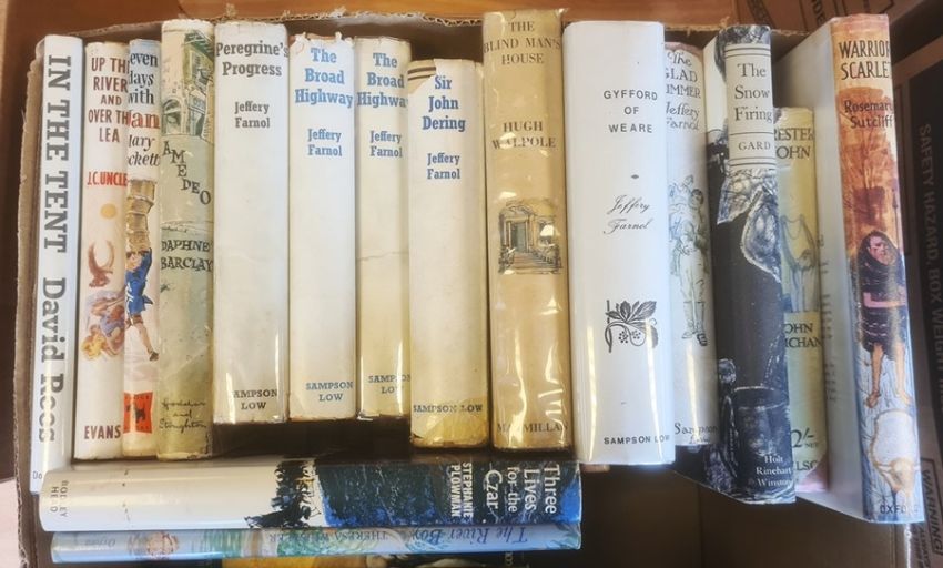 Quantity of children's books to include Jeffrey Farnell, Hugh Walpole, John Buchan, Rosemary Sutcliffe, Claire Cooper, etc (1 box)