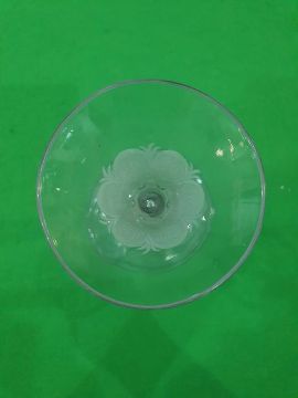 Mid 18th century wine glass with trumpet bowl, the stem and bowl engraved with Jacobite Rose decoration, 17.5cm high Condition ReportOverall good condition. Some very light surface scratches.  No chips or cracks.