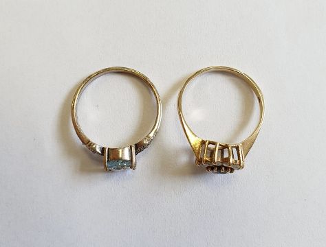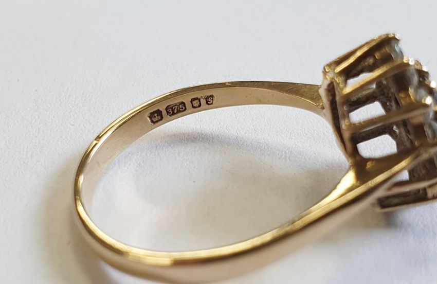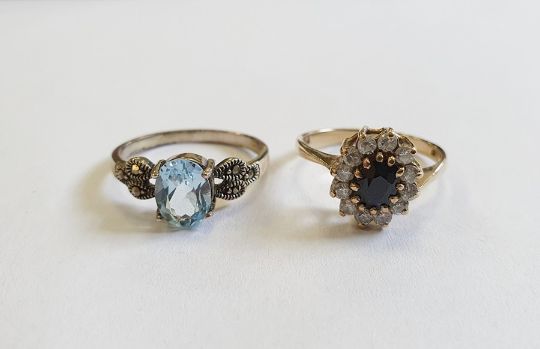 9ct gold, sapphire and white stone cluster ring and a silver, marcasite and blue stone ring (2)