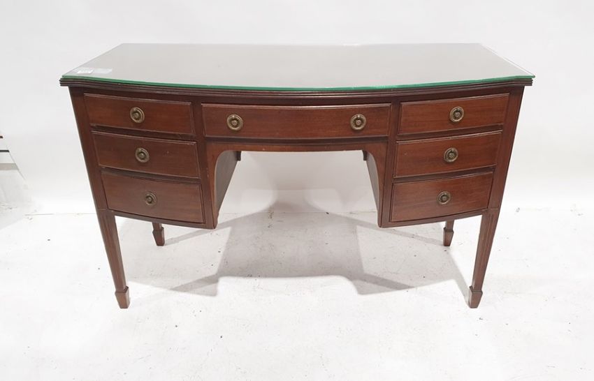20th century bowfront dressing table of seven assorted drawers, on square section fluted tapering supports to spade feet, 121cm x 78cm