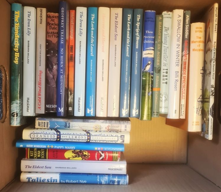 Modern and Earlier children's books - Isla Mitchell, Doreeen Tovey, Barbara Willard, Richard Church, Henry Treece, Geraldine Harris, various annuals, " Space ships Away " comic ( 2 boxes_