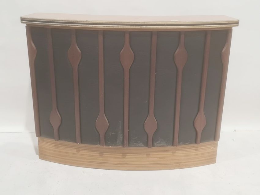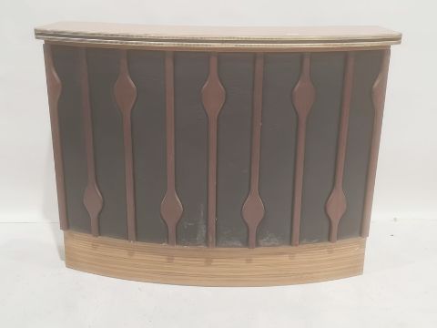 20th century home bar with melamine top, vinyl front, 126cm x 96cm