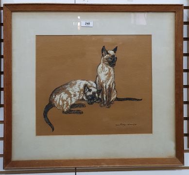 Jean Parry-Williams (1918-2010)Chalk and pastelTwo Siamese cats, "Loo and Packet", signed lower right, 30 x 35cm