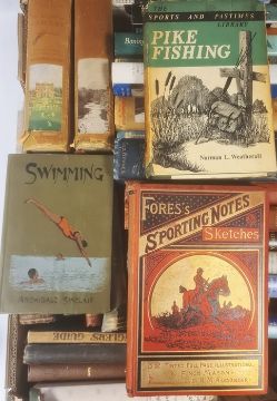 Sporting Interest - Mountaineering, Shooting, Hunting, Tennis, Swimming etc - The Lonsdale Library Mountaineering, du Chaillu " The Land of the Midnight Sun" folding frontis, ffep's missing, ills throughout, pictorial cloth, Herzog Maurice "Annapurna" Jonathan Cape 1952, Noyce Wilfred " The Gods Are Angry" Heinemann 1957, signed by the author on the title page etc. The Badminton Library  Shooting, The Lonsdale Library Cricket and Trout Fishing, Payne Gallwey, Sir R. " Letters to Young Shooters...." Longmans Green and Co. 1914, green cloth, gilt titles, Parker, Eric  " Game Pie" Philip Allen  1925, green cloth with gilt titles and decoration, Barker  K F " The Young Entry" , Drobyny Jaroslav ( Wimbledon champion 1954)  " Autobiograph of..." Hodder and Stoughton 1935, d-j , not price clipped. Lutyens " Mr Spinks and His Hounds...",  and other related vols ( 1 box)