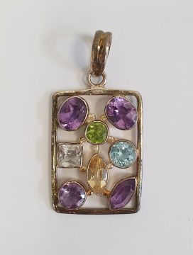 TGGC silver and semi-precious stone pendant of oblong openwork form and set eight variously cut stones, 4.75cm including the hanger