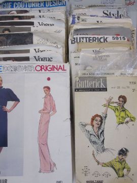 Box of assorted dress-making patterns, including 'Vogue Americana (Bill Blass)', 'Vogue American (Calvin Klein)','Vogue Individualist', 'Vogue Vintage', 'Vogue Couturier', 'Vogue Paris (Karl Lagerfeld)', 'Style (Caroline Charles)' and various 'Butterick' etc.