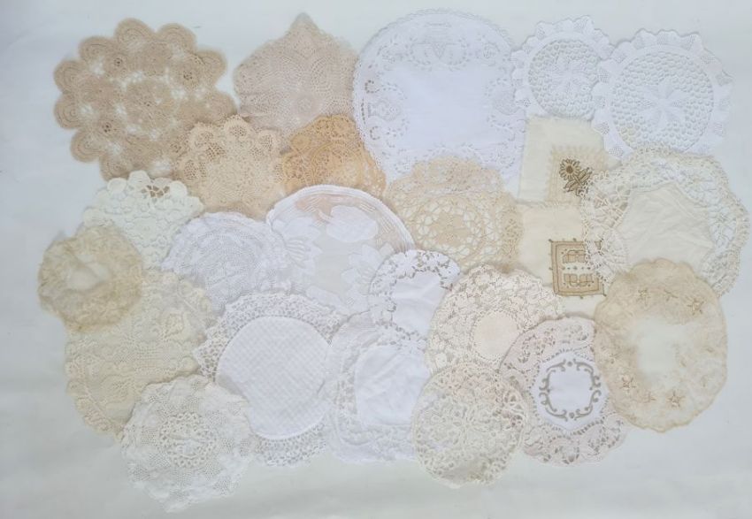 Large quantity of cotton and lace doilies, 80 plus approx. (1 box)