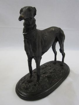 After Mene bronzed figure of a greyhound on oval base, signed to base, 26cm high