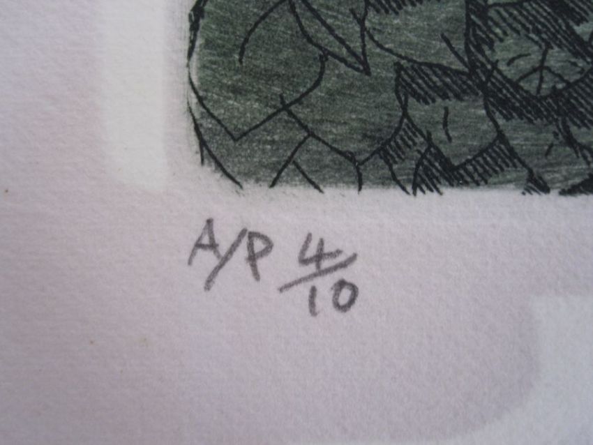 Gordon Miles (20th century school) Etchings "Cneifio Dafad Bwlch Y Dwr" and "Looking Forwards Dihewyd", both marked artists proof and one numbered 4/10, signed in the margin in pencil and dated 81, 57cm x 67cm and 56.5cm x 76cm, unframed (2)