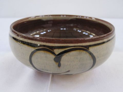 Studio pottery bowl by Margaret Leach, Taena pottery in brown glazes, studio pottery mark crossed wheel to base, 10.5cm diameter