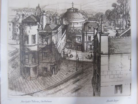 Harold Sayer (1930-1993) Etching "Montpellier Rotunda, Cheltenham", limited edition 20/150, dated 1952 and signed in pencil to the margin, 21cm x 24cm
