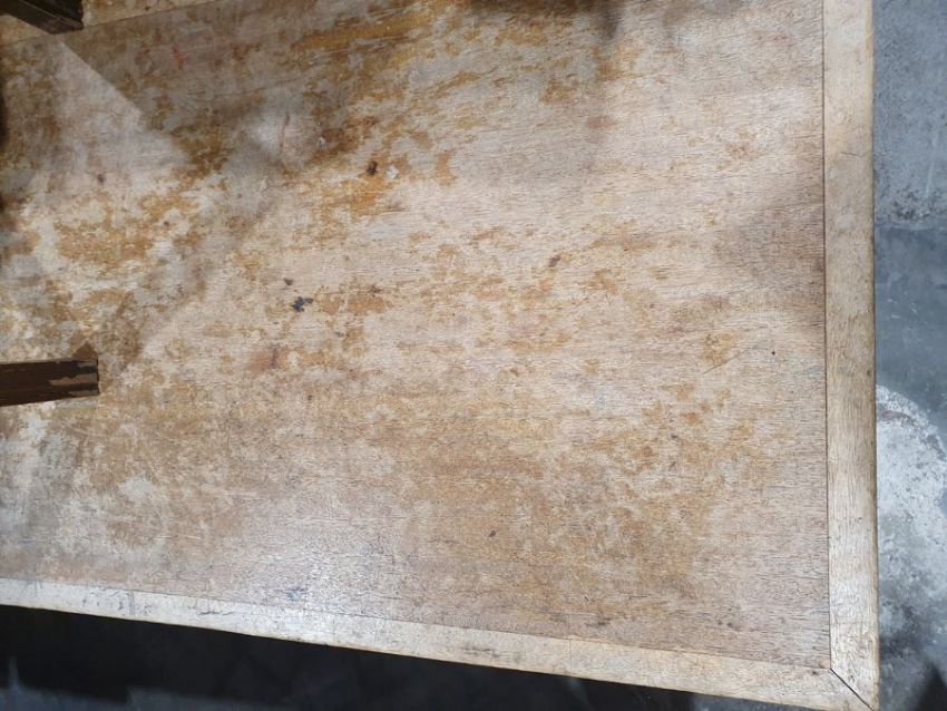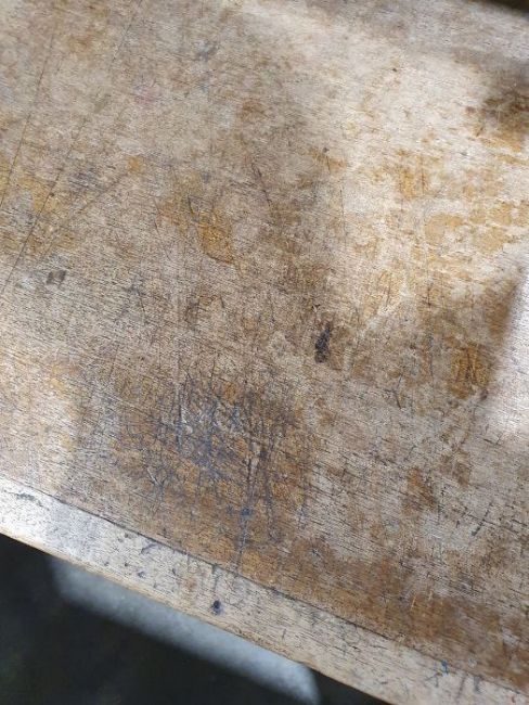 Numerous scratches, scuffs and knocks. Some saw marks, fading, discolouration and staining.