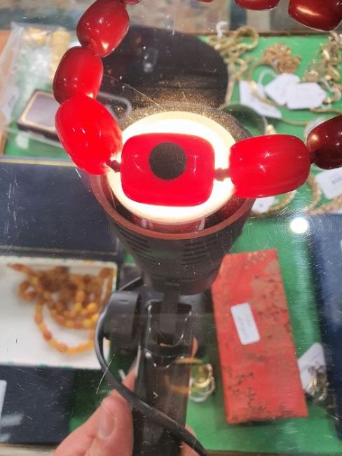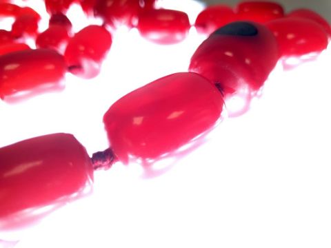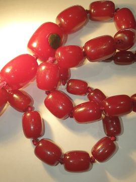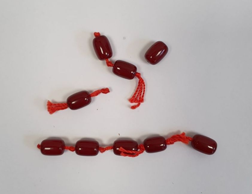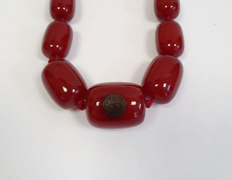 Red amber bead necklace, graduated and nine loose beads, gross weight approx. 110gCondition ReportSpiral patterns visible when held up to light source. Difficult to photograph.