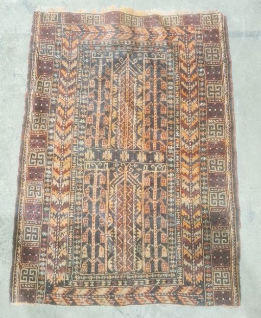 Eastern black ground rug in oranges, blacks and reds, 120cm x 88cm