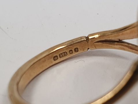 9ct gold ring with open wire and ball decoration, finger size M and another gold-coloured ring with scrolling decoration, approx. total weight 6.5g (2)
