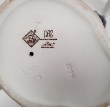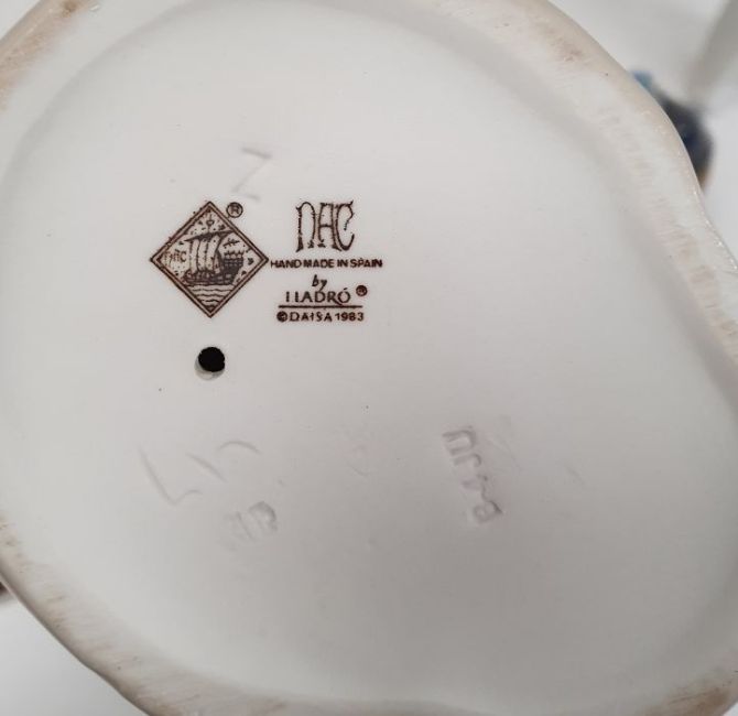 Lladro figure of a little girl with doll and kitten, Nao figures, a Chinese figure of a gentleman fishing and a group of three Chinese Wise Men (6)
