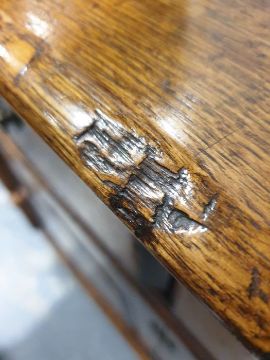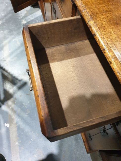 20th century oak low dresser, rectangular top, four short drawers above cupboards, stile supports, 184cm x 82cmCondition ReportOld scratches and dents throughout. A cup ring to dresser top. Seems structurally sound. Limited foot wear. No obvious woodworm.