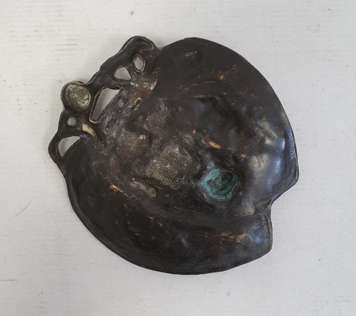 Oriental-style bronzed lily with relief gilded decoration of frog and fruiting vines, 11.5cm wide