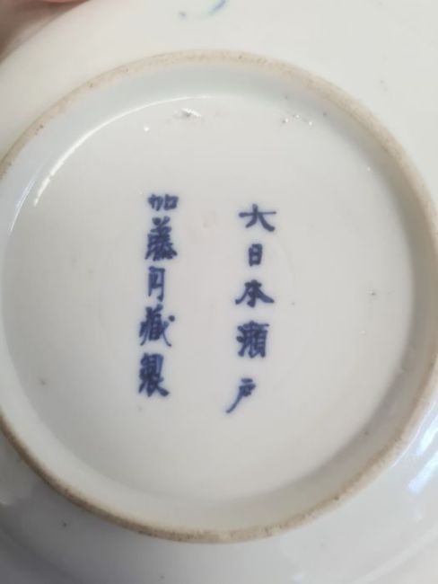 Porcelain plate with underglaze blue flowering branch decoration, 19cm diameter, 10-character mark to base