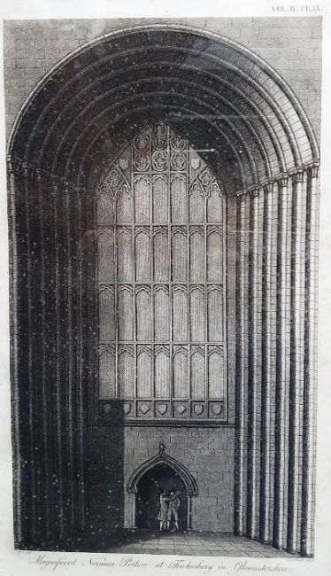 Robson Engraving "York Minster and Bootham Bar", signed in pencil to the margin, 25cm xbJ Caldwell, engraver Numbered plate"Magnificent Norman Portico at Tewkesbury in Gloucestershire"Coloured engraving Gloucester, Tewkesbury map, etc (7)