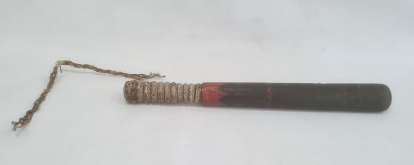 19th century painted wooden truncheon with cream handle, painted in black and red, 40cm