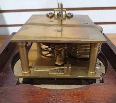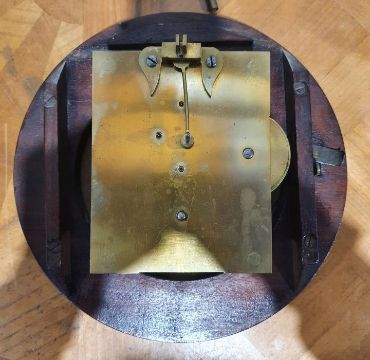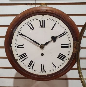 19th century mahogany cased wall clock of circular form, fusee movement, Roman numerals to the dial, 25cm in diameter
