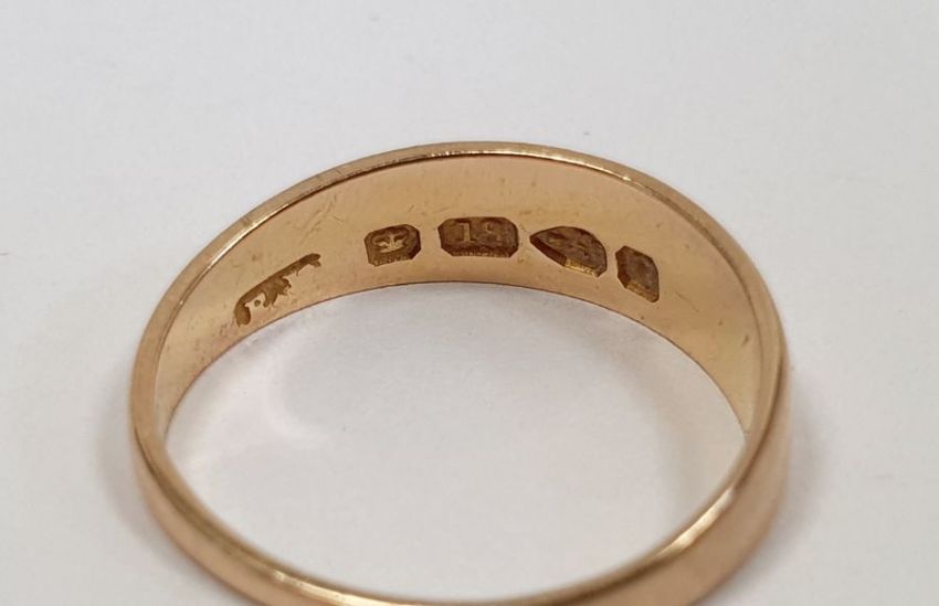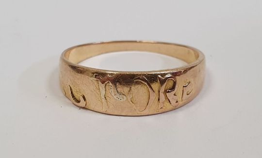 18ct gold ring with worn inscription, finger size I, approx. 2g