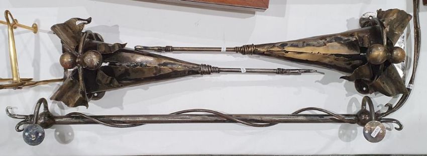 Pair of modern metal wall lights, each of folded design with pricket candlestick fitting and a matching wall bracket (3)