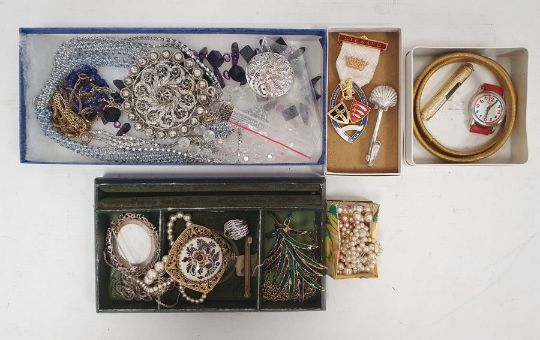 A small quantity of costume jewellery, beaded necklaces, simulated pearls, brooches, a Masonic enamel medal 'Royal Masonic Institution for Girls 1963' (1 box)