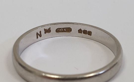 Platinum wedding band, 3.5g approx.Condition ReportApproximate size: O