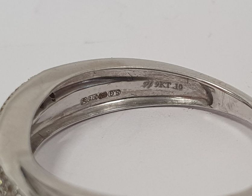 9ct white gold and CZ set ring, 1.5g approx. in total, a 9ct white gold set ring, 2g approx. in total and a 9ct gold and purple cabochon set ring, 4g approx. in total (3)